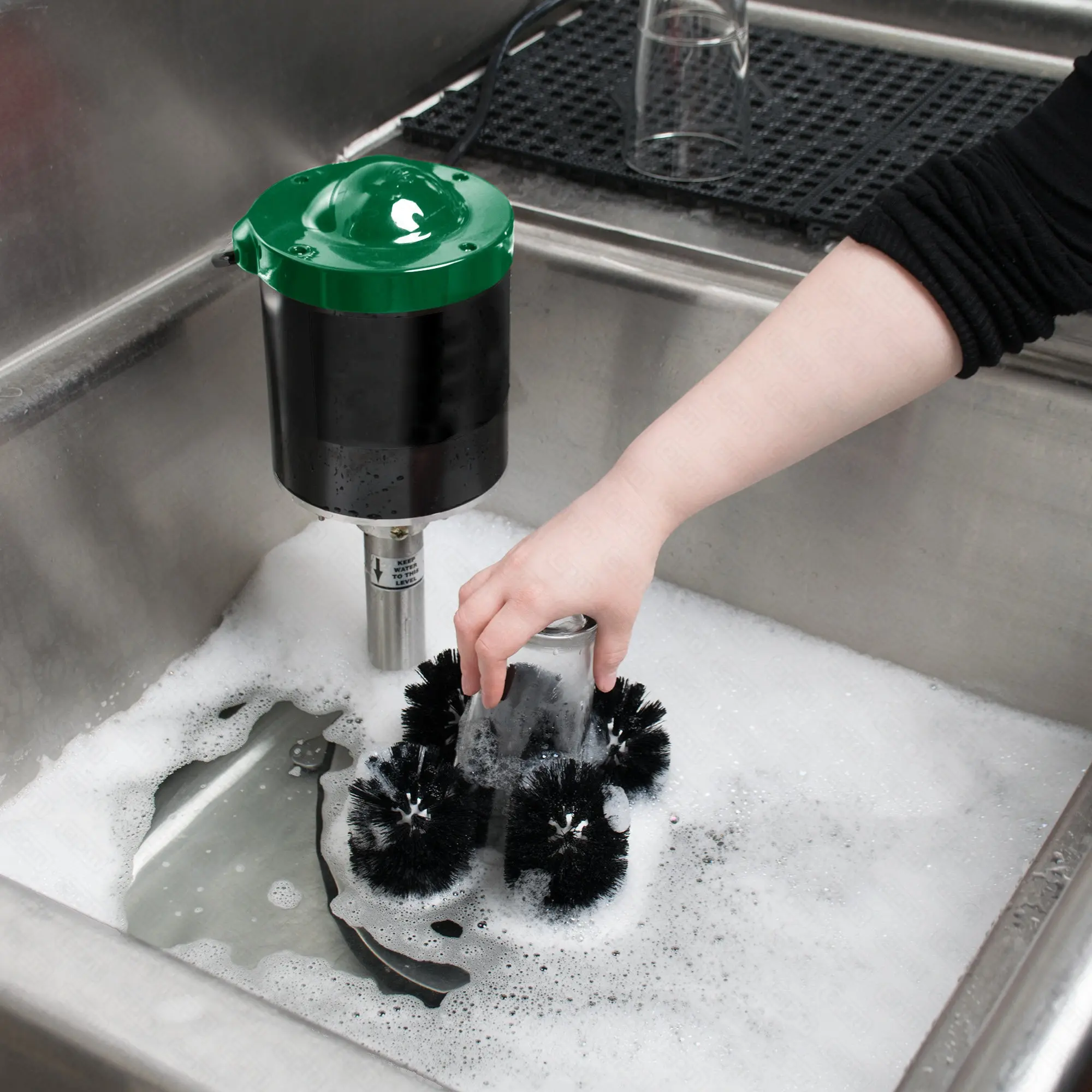 Аппарат для мойки бокалов т.м. EKSI серии FM, модель FM-01A, 220В, 240Вт, 214х356х433мм, вес нетто 9,9 кг, нерж. сталь, 5 щеток для мойки, механическое включение (тумблер), 1/3 лошадиной силы