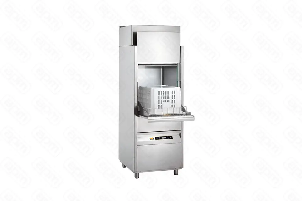 С подключением к горячей воде, с дозаторами моющего и ополаскивающего средств, электронная панель управления, ОПОЛАСКИВАЮЩАЯ ПОМПА, 740х875х1883мм, 4 цикла мойки, производит-ть 30/20/10/7 кассет/час, размер кассеты 565х690мм, двойные стенки для термо и шумо-изоляции, 2 фильтра моечной ванны, 13500Вт, 380В, максимальная высота посуды 650мм.