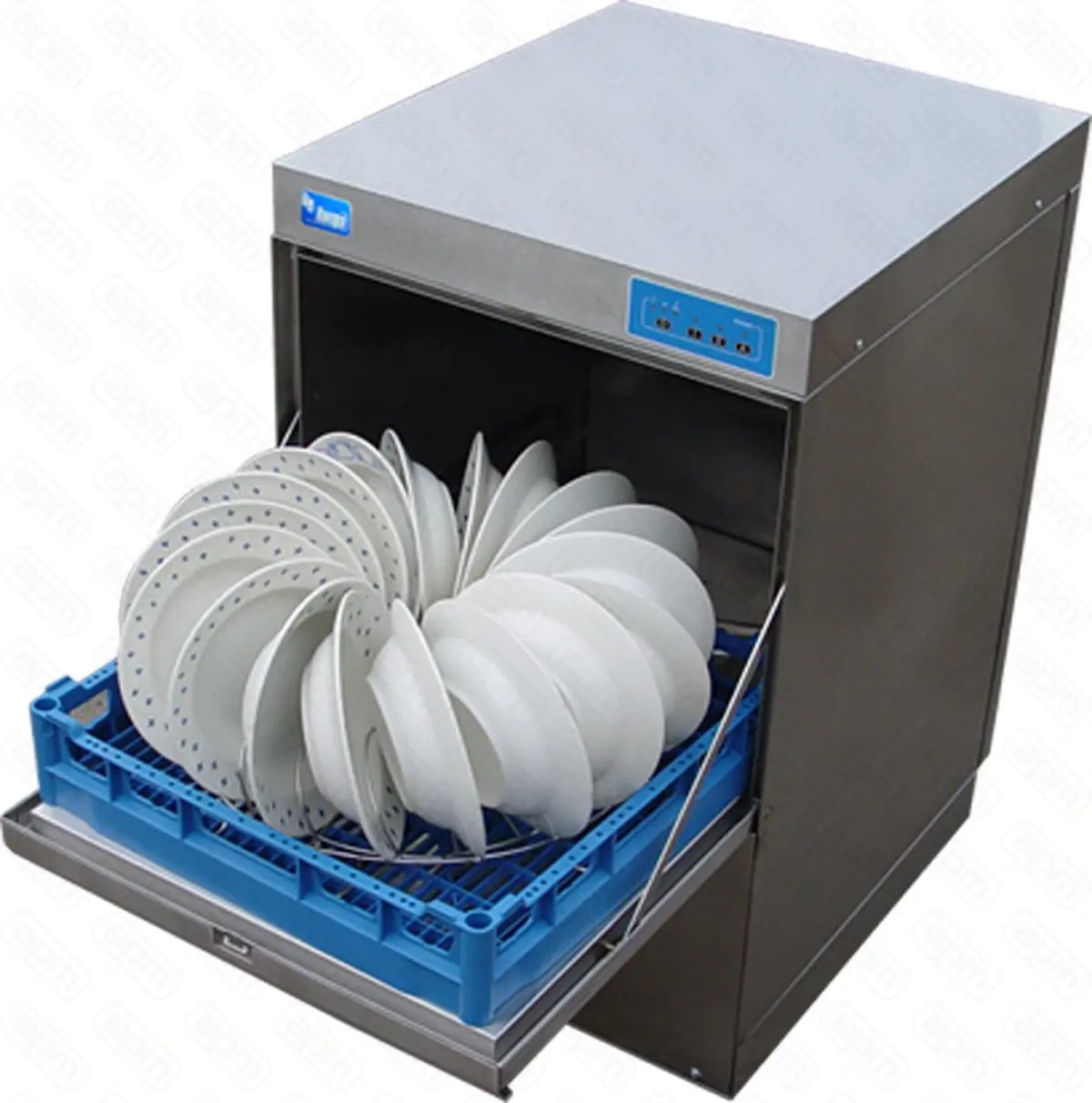 Габариты: 550х630х880 мм. Мощность 9,6 кВт. Производительность (по тарелкам ø240 мм) 540 шт./час. Машины посудомоечные фронтальные МПФ-30-01 «Котра» периодического действия. Предназначены: для мытья тарелок, стаканов, чашек, столовых приборов в кафе, барах, закусочных и других предприятиях общественного питания с числом посадочных мест до 50. Машины работают как при горячем, так и при холодном водоснабжении. Машины обеспечивают качественное мытье посуды с применением моющих средств. Стандартно комплектуются: кассетой для мытья стаканов и чашек, кассетой для мытья приборов с сеткой, вкладышем для мытья тарелок и блюдец, фильтром для воды, дозатором моющего средства. (дополнительно могут комплектоваться подставкой, обеспечивающей эргономичность работы при загрузке и выгрузке кассет, и дозатором ополаскивающего средства). Преимущества: все видовые корпусные детали изготовлены из шлифованной нержавеющей стали, покрытой пленкой для защиты при транспортировании и монтаже. Имеют раздельные режимы и системы циркуляции воды для мытья и ополаскивания. Легкосъемные моющие, ополаскивающие души и фильтр насоса, изготовленные из нержавеющей стали, облегчают чистку и уход за машиной. Оснащены электронной панелью управления. Цепи управления работают на безопасном сверхнизком напряжении 24 В. Обеспечивают автоматическое наполнение ванны и поддержание ее уровня, автоматический цикл мойки и ополаскивания, автоматическую подачу моющего средства. Автоматический повторный запуск выбранной программы при закрывании двери. Постоянный контроль температуры и уровня воды в водонагревателе, при необходимости, автоматическое ее пополнение на любом этапе работы машины. Установленный фильтр радиопомех обеспечивает подавление помех поступающих в сеть. Защита от перегрева воды в водонагревателе. Прекращение работы при открывании двери. Программный контроль перегрузки двигателя по току и при обрыве фаз двигателя со световой индикацией. Световая индикация выбранной программы, нагрева воды, открытия двери, автоматического повторного запуска, возможных неисправностей.