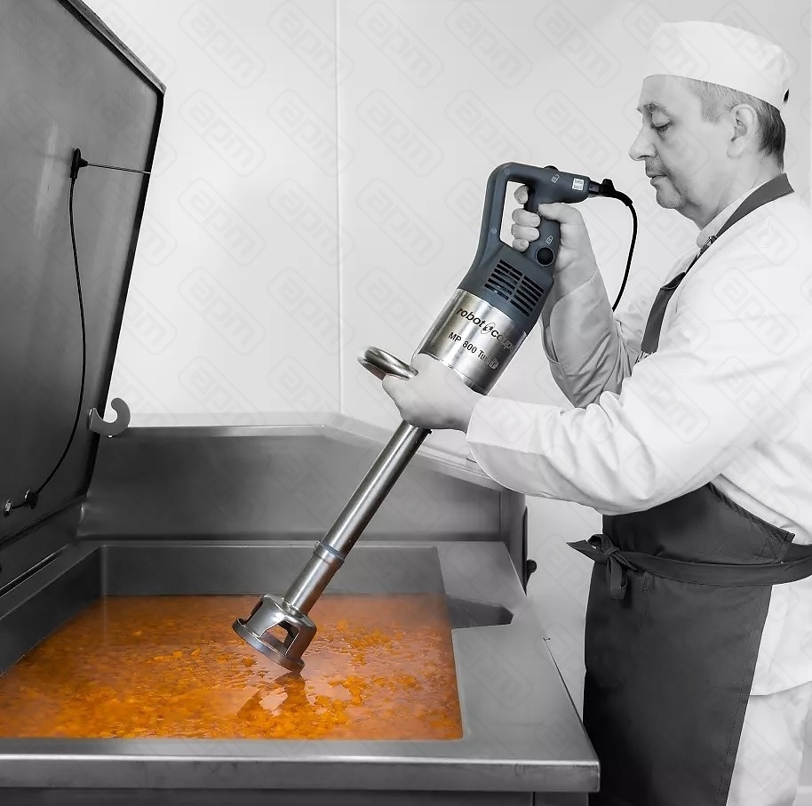 Robot Coupe MP800 TURBO TP — профессиональный погружной миксер, используемый для эффективного приготовления пюреобразных блюд, соусов, муссов, жидкого теста и майонеза на предприятиях общественного питания и торговли. Уникальная конструкция устройства позволяет комфортно готовить блюда непосредственно в наклоняющихся кастрюлях и фритюрницах, делая процесс готовки быстрым и эффективным.