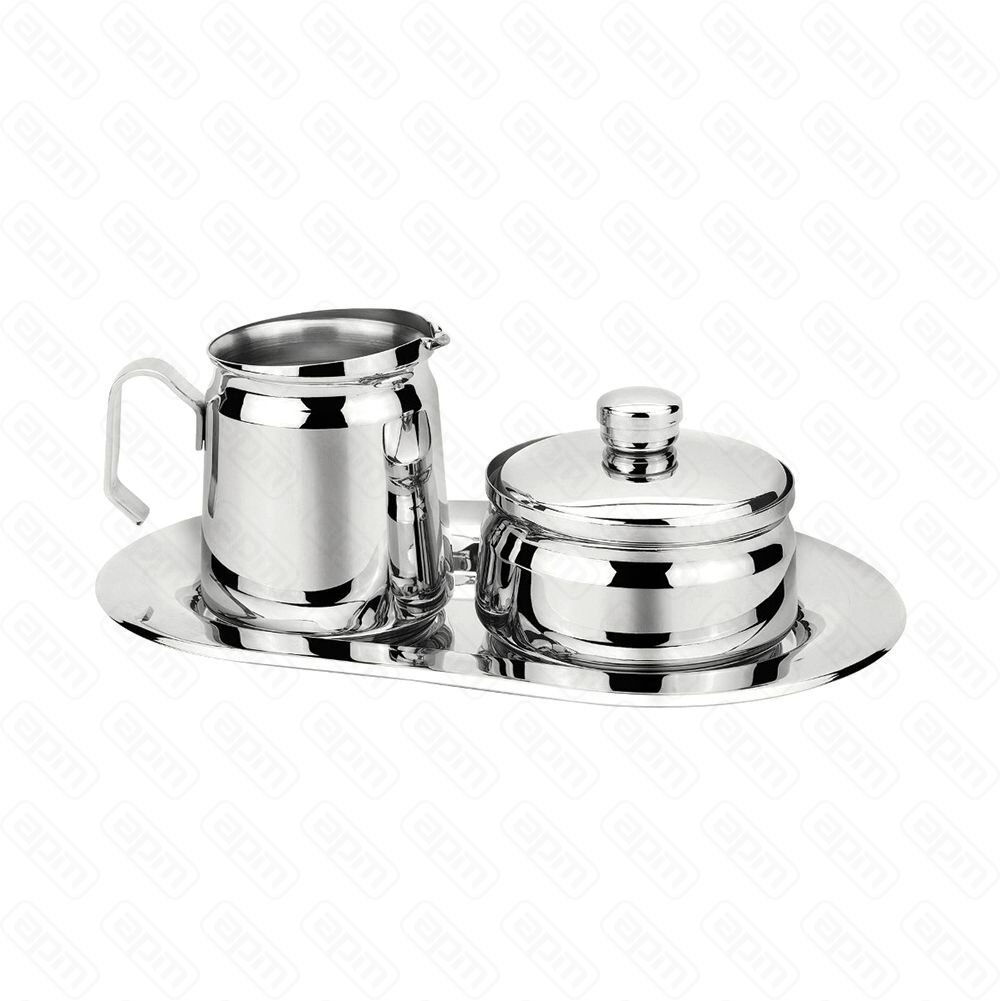 Молочник с сахарницей на блюде, нержавейка, P.L. - REG