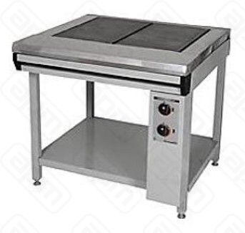 Плиты электрические предназначены для тепловой обработки полуфабрикатов в функциональных емкостях, варки, жарки, тушения и пассерования на предприятиях общественного питания. Исполнение ПЭ–0,34СП: плита двухконфорочная без жарочного шкафа. Углеродистая сталь с покрытием, рабочий стол плиты из н/стали. Каркас из черного металла с полимерным покрытием.