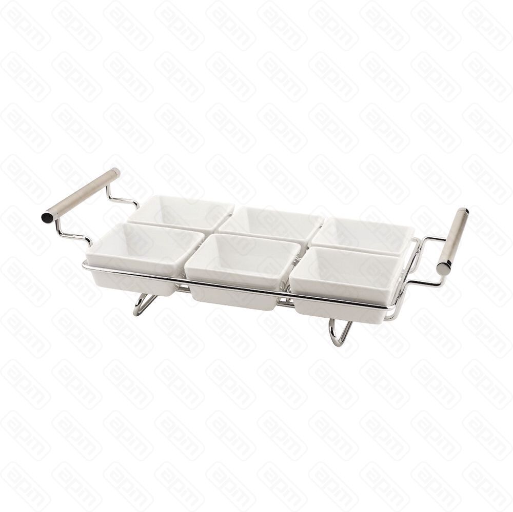 Подставка хромированная с шестью фарфоровыми блюдами, 39*20 см, P.L. - REG