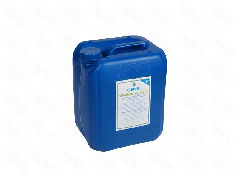 Щелочное моющее ср-во дезинфицирующее с хлором т.м.CLEANEQ серии Alkadem N/A400 для посудом. машин (12 кг). На основе гидроксида натрия, фосфатов и активного хлора ТУ 2381-002-53208249-2002. Применяется для мойки и отбеливания посуды из фарфора, стекла, пластика, нержавеющей стали в автоматизированных посудомоечных машинах в концентрации 2 – 3 мл/л. при температуре 60 – 70°С и промывки трубок систем для розлива пива в концентрации 15 – 30 мл/л. при температуре 20 – 35°С. Обладает высокой моющей и эмульгирующей способностью. Эффективно размягчает и удаляет пищевые остатки, жировые и белковые загрязнения, кофейные и чайные налеты, хмелевые смолы, расщепляет крахмал. Не подходит для мойки посуды из алюминия! Опасный ингредиент: гидроксид натрия – едкий. При работе со средством носить защитные перчатки и очки. При попадании в глаза и на кожу тщательно промыть водой. Гарантийный срок хранения – 12 месяцев. Срок годности – 3 года Хранить только в оригинальной упаковке, не вскрывая, при температуре от –5 до +25°С. Беречь от солнечных лучей. Вес нетто 12 кг. Упаковка: канистра 10 дм3