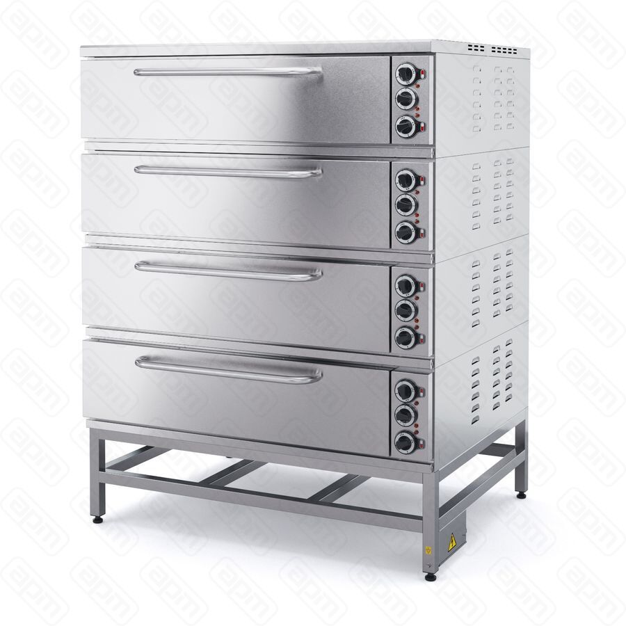 Шкаф пекарный электрический ШПЭ104, 4 камеры, лиц. нерж, под камен., подставка краш, сварн.