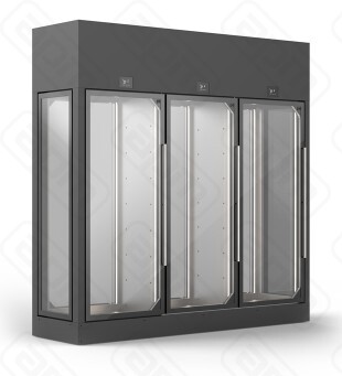 Код A1WF3BV5A/873 ALUMINIUM GREY +12PCS*M220430008; 2,5кВт, 220В, +4/+18 С, 580кг, 1371л, версия с встроенным хол. агрегатом, R290 фреон, цвет корпуса серый матовый (код 718). 3 двери со стеклом спереди, стеклянные боковые панели, глухая задняя стенка. Вместимость макс. до 630 бутылок (зависит от типа установленных полок). В данной комплектации: полки R х 12 шт, суммарная вместимость с этим типом полок до 500 бутылок "Бордо"