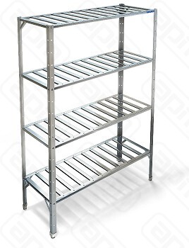 Стеллаж ТЕХНО-ТТ СТР-024/804 РЕШЕТЧ. предназначен для хранения посуды и инвентаря, а также сухих продуктов на предприятиях общественного питания и торговли. Особенности: