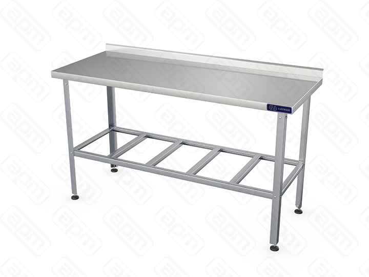 Стол пристенный KAYMAN СП-255/1806-А предназначен для использования на предприятиях общественного питания, торговли, для разделывания и обработки пищевых продуктов, а также в качестве вспомогательной поверхности для кухонного оборудования. Особенности: