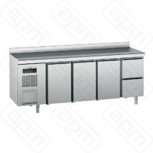 Стол с охлаждаемым шкафом, производства SAGI (Италия) модель KUC2A, предназначен для использования на профессиональной кухне и сочетает в себе функциональность рабочей поверхности и холодильной камеры. Он используется для приготовления и хранения пищевых полуфабрикатов.