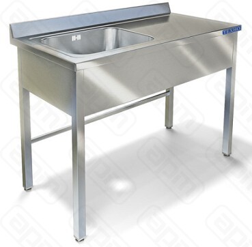 — Стол производственный с бортом высотой 70 мм и ванной моечной расположенной справа