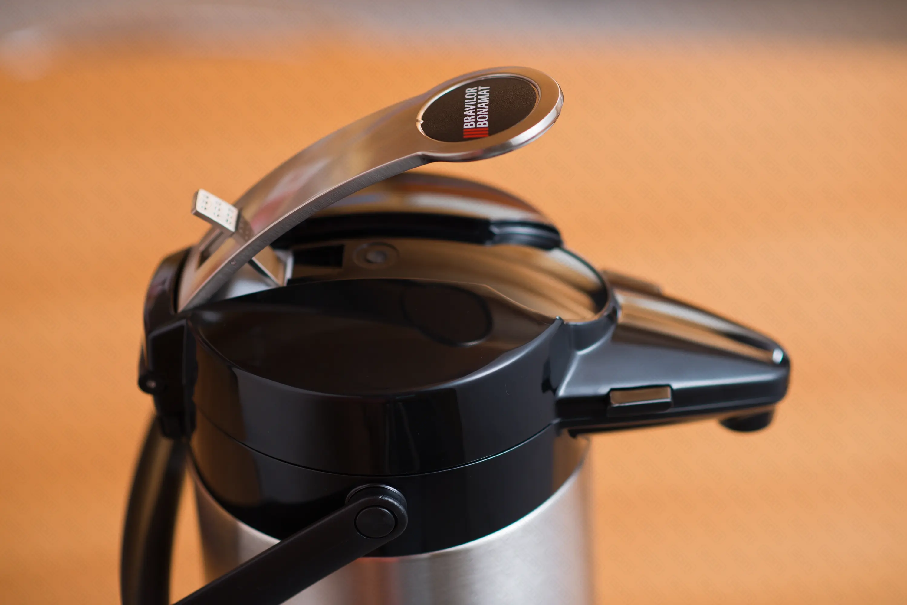 Термос Airpot Furento т.м. Bravilor Bonamat артикул 7.171.331.101, материал - нержавеющая сталь, 164x378мм, объём 2,2 литра, внутренняя чаша из нерж.стали, набор воды нажатием кнопки, подходит для использования с кофемашинами THa. Доступен в разных цветах.