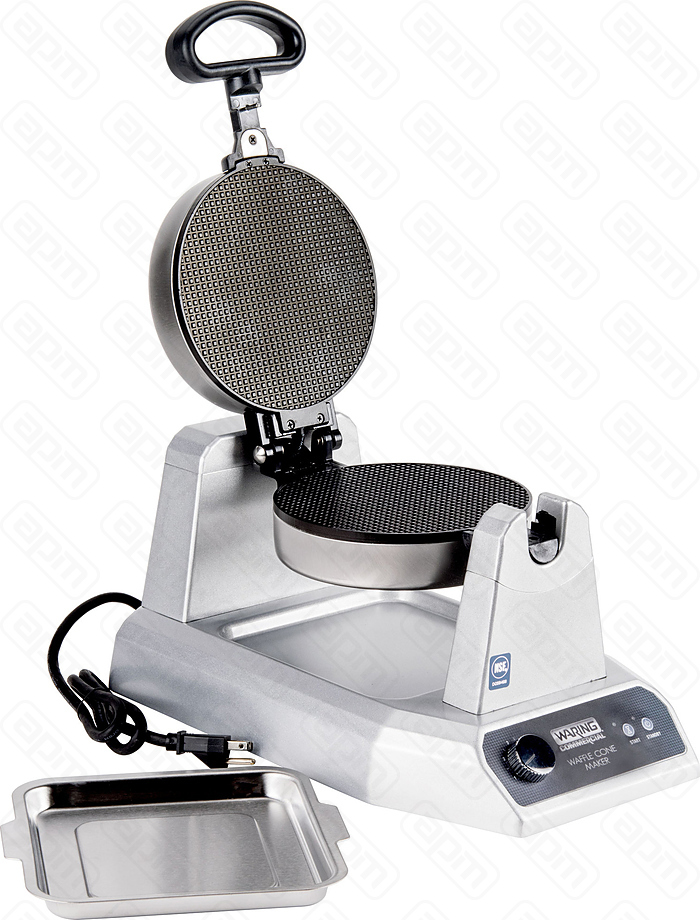 Waring WWCM180 — профессиональное оборудование для предприятий общественного питания и торговли, предназначенное для выпекания конических вафель. Три слоя антипригарного покрытия на рабочих поверхностях упрощают удаление готовых вафель и существенно снижают трудоемкость очистки. Нагревательные элементы, встроенные прямо в металлические формы, обеспечивают эффективный и однородный подогрев.