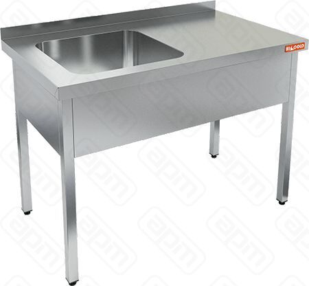 - Материал каркаса: нержавеющая сталь AISI430 - Толщина каркаса: 1 мм - Тип каркаса: труба 40 х 40 мм - Материал столешницы: нержавеющая сталь AISI430 - Толщина столешницы: 1 мм - Тип столешницы: усиленная ребрами жесткости - Высота рабочей поверхности: 850 мм - Ванна слева - Размеры ванны: 500 х 400 х 250 мм - Высота борта: 50 мм - Отступ под коммуникации: 70 мм