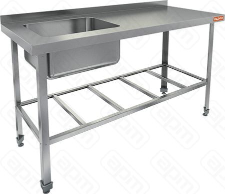 - Материал каркаса: нержавеющая сталь AISI430 - Толщина каркаса: 1 мм - Тип каркаса: труба 40 х 40 мм - Материал столешницы: нержавеющая сталь AISI430 - Толщина столешницы: 0,8 мм - Тип столешницы: усиленная ребрами жесткости - Высота рабочей поверхности: 850 мм - Ванна слева - Размеры ванны: 500 х 400 х 250 мм - Распределенная статическая нагрузка на полку: 50 кг - Высота борта: 50 мм - Отступ под коммуникации: 25 мм