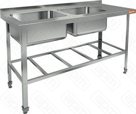 - Материал каркаса: оцинкованная сталь - Толщина каркаса: 0,8 мм - Тип каркаса: уголок 40 х 40 мм - Материал столешницы: нержавеющая сталь AISI430 - Толщина столешницы: 1 мм - Тип столешницы: усиленная ребрами жесткости - Высота рабочей поверхности: 850 мм - Ванны слева - Размеры каждой ванны: 500 х 500 х 300 мм - Распределенная статическая нагрузка на полку: 50 кг - Отступ под коммуникации: 25 мм - Высота борта: 50 мм