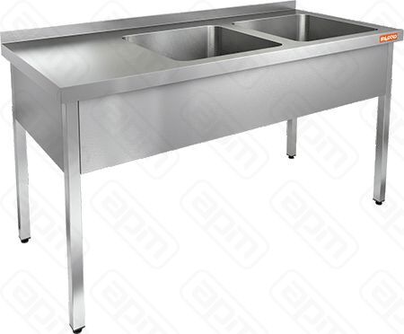 - Материал каркаса: нержавеющая сталь AISI430 - Толщина каркаса: 1 мм - Тип каркаса: труба 40 х 40 мм - Материал столешницы: нержавеющая сталь AISI430 - Толщина столешницы: 1 мм - Тип столешницы: усиленная ребрами жесткости - Высота рабочей поверхности: 850 мм - Ванны справа - Размеры каждой ванны: 500 х 500 х 300 мм - Высота борта: 50 мм - Отступ под коммуникации: 70 мм