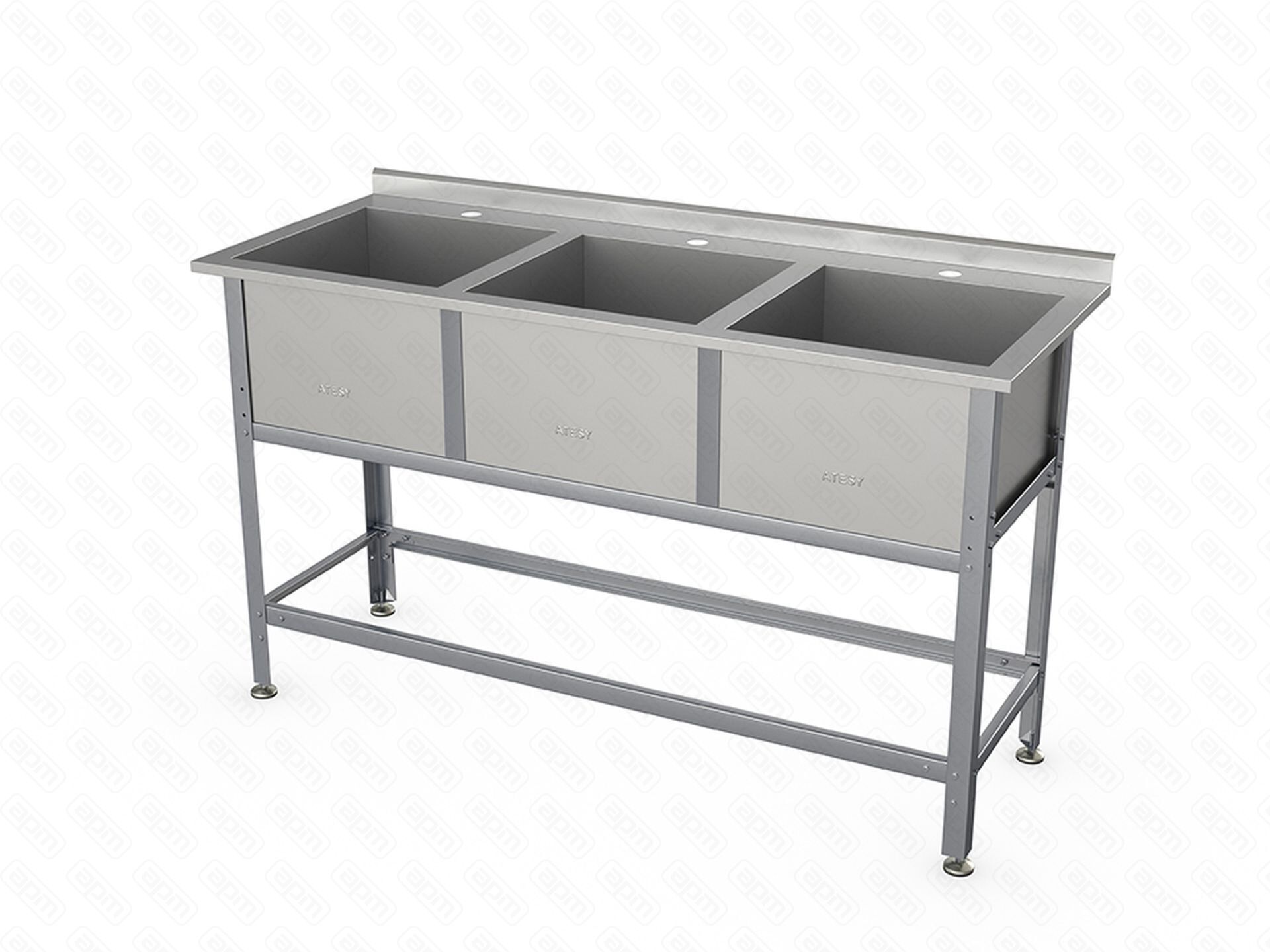 Трехсекционная моечная ванна ВСМ-Б-3.530.-1-02 (ВМ-3/530) предназначена для мытья, дезинфекции и ополаскивания использованной посуды и инвентаря. Используется на предприятиях общественного питания и торговли.