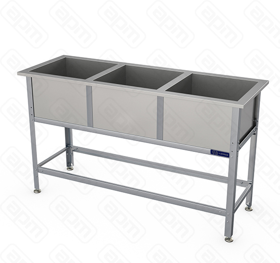 Трехсекционная моечная ванна KAYMAN ВМ-713/630-А предназначена для мытья, дезинфекции и ополаскивания использованной посуды и инвентаря. Используется на предприятиях общественного питания и торговли.
