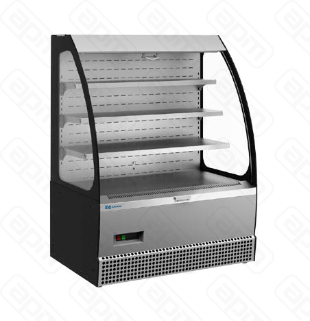 950х780х1265 t режим +1+10 C. Витрина холодильная,со встроенным агрегатом, 3 металлические полки, полезный объем —0,21 м3,охлаждаемая площадь поддонов для выкладки продуктов, 1,1 м2, динамическое охлаждение, оттайка естественными теплопритоками, потр. эл.энергии в сутки —11,45кВт, R290, цвет корпуса — серый матовый
