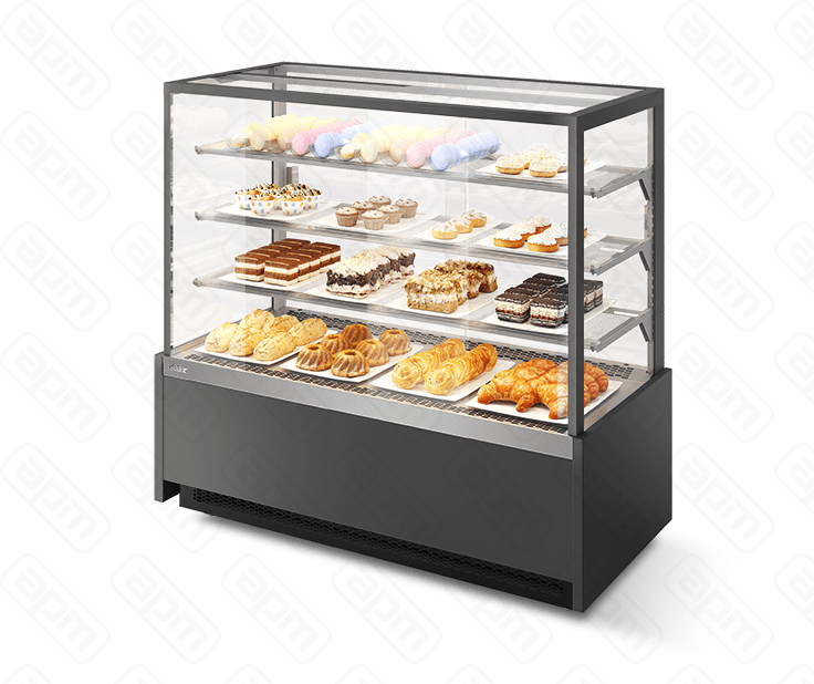 1370х642х1288, t режим °C+6…+12. Витрина кондитерская, 3 стеклянные полки, подсветка LED, размер выкладки: 1370*427, площадь загрузки, м.кв. 1,95, вентилируемое охлаждение, раздвижные задние шторки, потр. эл.энергии 7,4кВтч/сутки, 150кг, цвет Серый матовый/шлифованная нержавейка, 220В, 0,7кВт